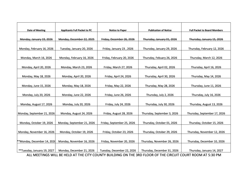 2026 Meeting Dates and Deadlines